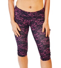 Pink and Black Lace Print Capris with Interior Pocket on Waistband
