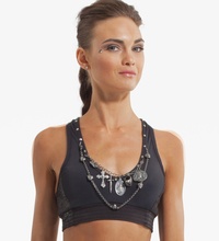 French Silk Zip Front Sports Bra with 18K Gold Zipper and Diamond-Eyed Skull Tassel